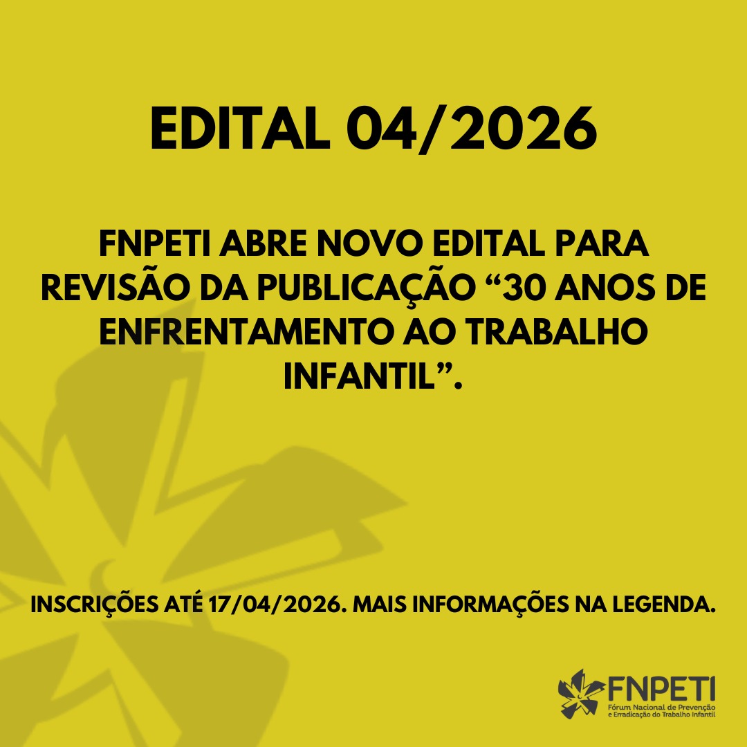 O edital completo pode ser conferido em: www.fnpeti.org.br/documentos